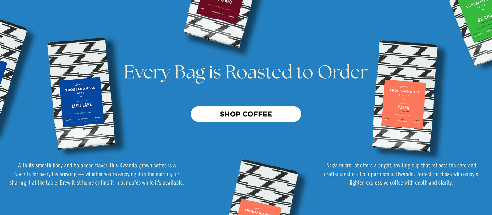 We source specialty-grade coffee directly from independent farmers in Rwanda, freshly roast it in Atlanta when you order it, and send it straight to wherever you are.